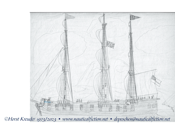 Dabei hat mich ein Satz mit frühen Schiffszeichnungen angesprochen. Er gehört zu einem, nicht realisierten, Vorläuferprojekt von Quincey Howard. Es ging um eine britische Kaperflotte, die von einem geheimen Stützpunkt in der Karíbik aus Handelskrieg führen sollte.
